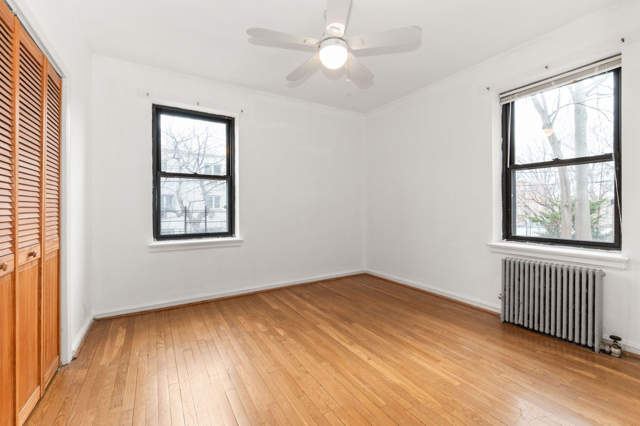 This elevated first-floor unit is located in a quiet area of the Garden Bay Manor Complex. The spacious open living plan features hardwood floors, built-in shelves, and a ceiling fan. North- and south-facing windows provide a pleasant cross-breeze, while the large double-wide window in the living room allows plenty of natural light to fill the space. This expansive area is perfect for entertaining and can comfortably accommodate a variety of furniture arrangements.Adjacent to the living area, the kitchen is equipped with a gas oven/stove with a hood, a refrigerator, and a corner sink. There are multiple cabinets above and below… Read Morethe generous countertop space, offering ample storage for kitchen essentials. Near the window and built-in shelves, there's room for a table and chairs, creating a cozy breakfast nook.Privacy is prioritized with the bedrooms and bathroom located toward the back of the unit. On the way, there are two large closets, ensuring that storage is never an issue. Both bedrooms feature ceiling fans and two windows each, with deep windowsills perfect for potted plants. They can easily accommodate a king-sized bed along with additional furniture. The double-wide closets, complete with wooden shutter doors, provide abundant storage space and even have interior lighting.The windowed bathroom includes a sink with white cabinetry below, alongside additional shelving above the toilet and door. It features a detachable showerhead and floor-to-ceiling off-white tiles for a clean and fresh appearance.Garden Bay Manor is a condo complex that spans several city blocks in the highly desirable Upper Ditmars/Astoria Heights neighborhood. It is known for its well-manicured landscaping, low common charges, and reasonable annual real estate taxes. Street parking is plentiful, and various transportation options are easily accessible, including the M60 and Q69 bus lines. Shops, cafes, restaurants, and LaGuardia Airport are just minutes away.Read Less