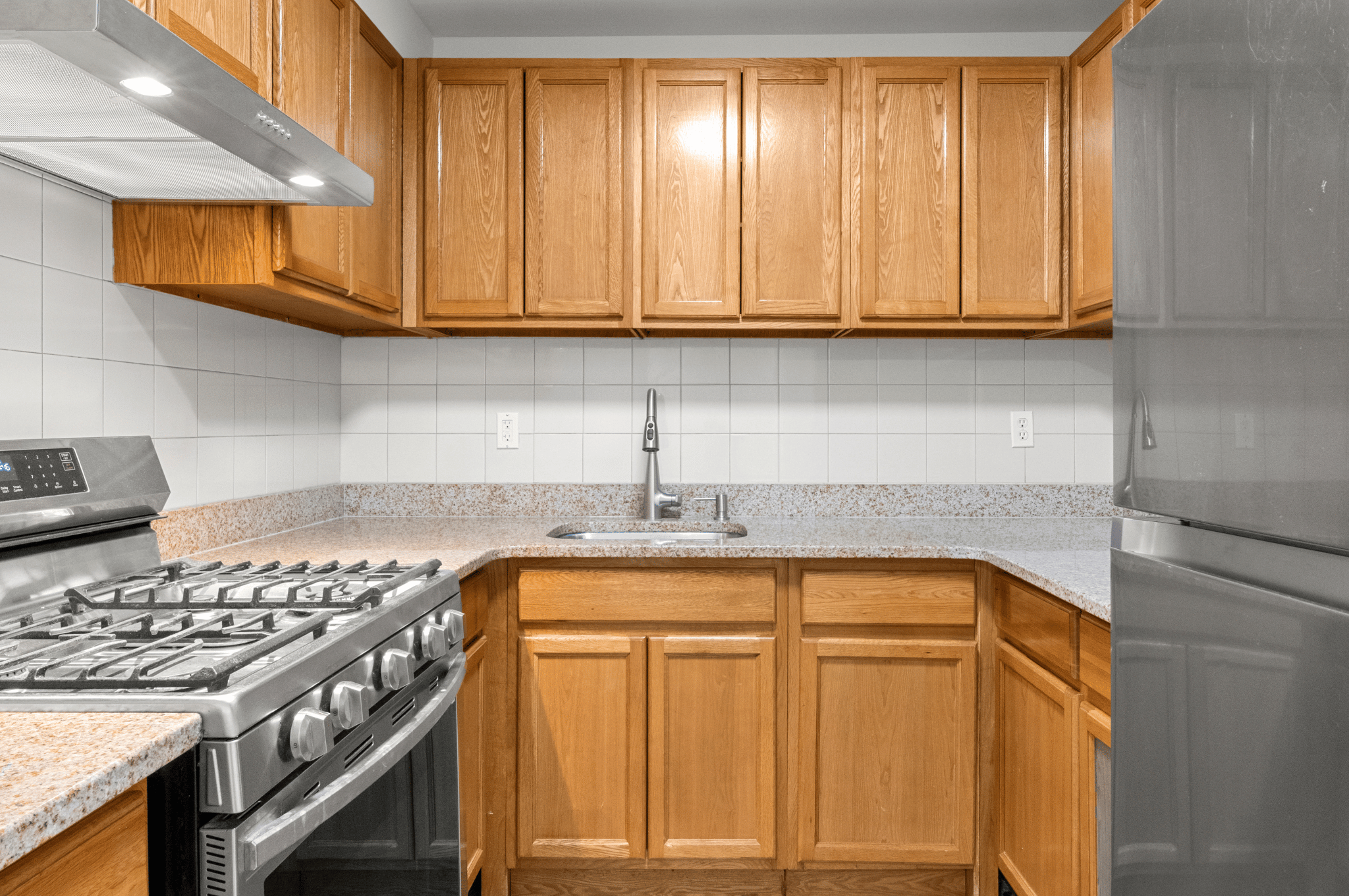 This updated one-bedroom, one-bathroom condo provides a clean slate for you to make your own. The space features fresh white paint, refinished natural hardwood floors, new lighting, and baseboard heating with a thermostat for temperature control. As you enter the home, you'll find a coat closet to your left and an even larger storage closet just past the kitchen. The living/dining area is spacious and can easily accommodate a dining room table adjacent to the kitchen. Sliding glass doors with a screen open to a well-lit balcony, which is large enough for a table and chairs. This private outdoor space… Read Moreis perfect for enjoying an early cup of coffee or relaxing with a good book. Facing west, the unit benefits from ample natural light throughout the day. The kitchen is equipped with a five-burner stove and a new hood, as well as a stainless-steel refrigerator. The sink is conveniently located between the two, making it easy to prepare meals. The tan and caramel granite countertops provide plenty of prep space and complement the granite floor tiles. Oak cabinets with lip-pull handles offer storage both above and below, while the off-white tile backsplash keeps the kitchen bright and inviting. The bedroom, along with the living room, features a brand-new GE AC wall unit and overlooks the backyard and garden. It's spacious enough to fit a queen-sized bed and includes a double-wide closet with sliding doors. The double-pane grille window comes with a deep windowsill, enhancing the room's aesthetic. The bathroom has also been upgraded, with the tiles regrouted and caulked. It includes a large tub/shower combination, off-white tiles, and oak cabinets for under-sink storage. There’s also a medicine cabinet with three mirrors and additional shelving above the toilet. Conveniently, the condominium has a laundry room on the first floor and bike storage available. The unit also comes with its own private storage space in the basement. It is ideally located near shopping, restaurants, and grocery stores, and is only a six-minute walk to the 7 train. Don’t miss out on this opportunity!Read Less