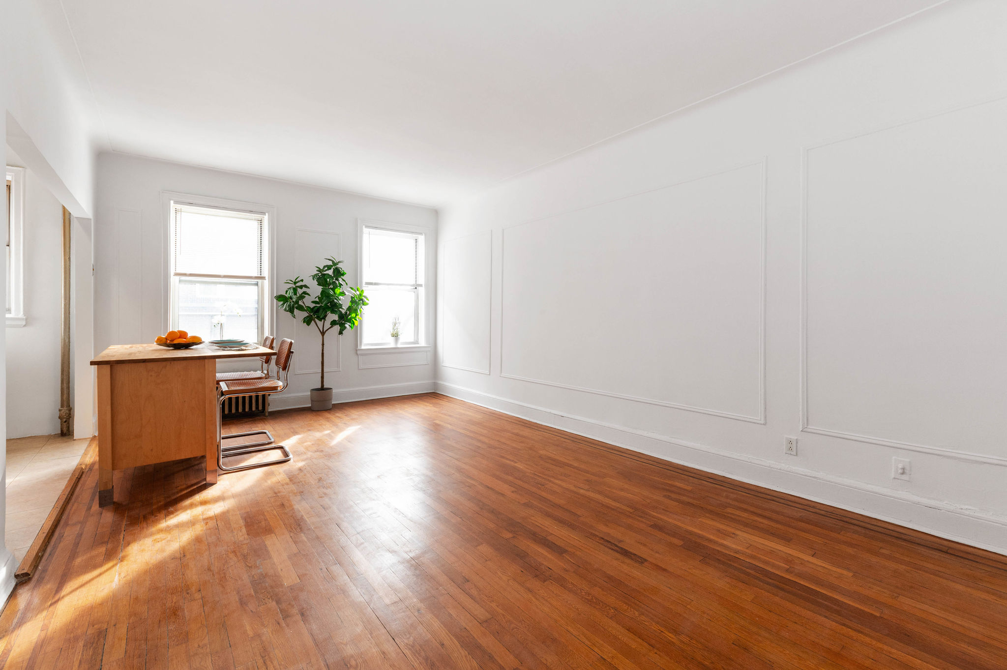exposure provides ample sunlight across the spacious living area and hardwood
